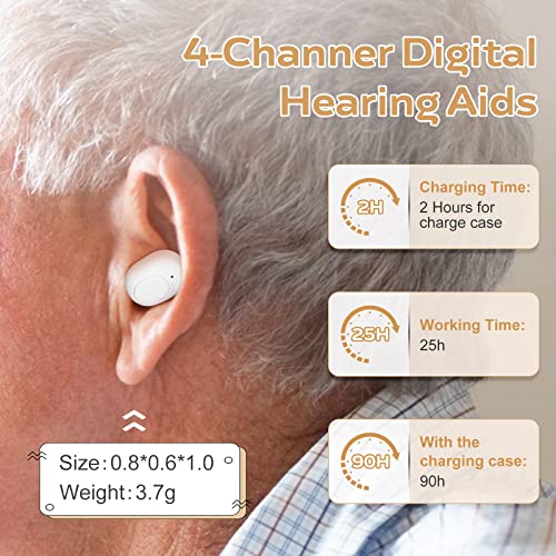 Rechargeable Hearing Aids for Seniors & Adults with with Noise Cancelling,Digital Hearing Amplifier with Into Ear No Squealing,Magnetic Contact Charging Box witg LED Power Display