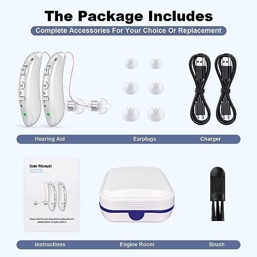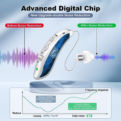 Rechargeable Hearing Aids for Seniors,Noise Cancelling for Adults, Digital Behind-The-Ear OTC Hearing Amplifier with Protective Storage Box (silver)