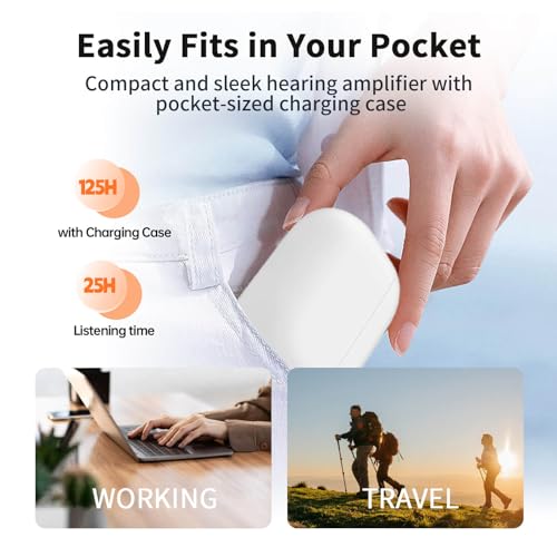 All-day comfort: The hearing amplifiers are designed with a small and lightweight design, making them easy to wear and remove. The ear canal hearing aids can fit your ear canal perfectly, reducing the discomfort of wearing traditional hearing aids.