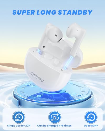 【Super Long Standby】Enjoy up to 20 hours of use on a single charge, and the charging case supports 4-5 cycles, providing a maximum total of 80 hours. Includes a fast-charging TYPE-C cable for quick replenishment.