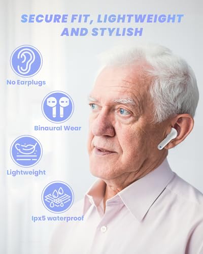 【Fashion & Comfortable】 Embrace style and comfort with the half in-ear design, ergonomically crafted for a secure fit that stays in place. Weighing only 3.4g per unit and boasting IPX5 waterproof rating, you can wear them all day with ease.