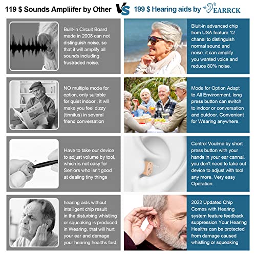 [SMART HEARING AIDS ]: The EARRCK newest Digital hearing Aids with DSF CHIP convert sound waves to digital signals, providing the clearest hearing possible. The devices can enhance background noise cancellation, reduce feedback, and help you focus on the sounds and voices you want to hear. ideal for elderly people with Mild to Moderate Hearing Loss assist in watching TV and Participating in pleasant conversations with family, friends. Connect better with loved World.