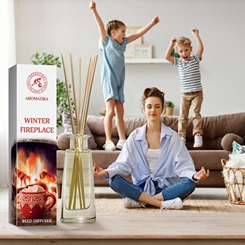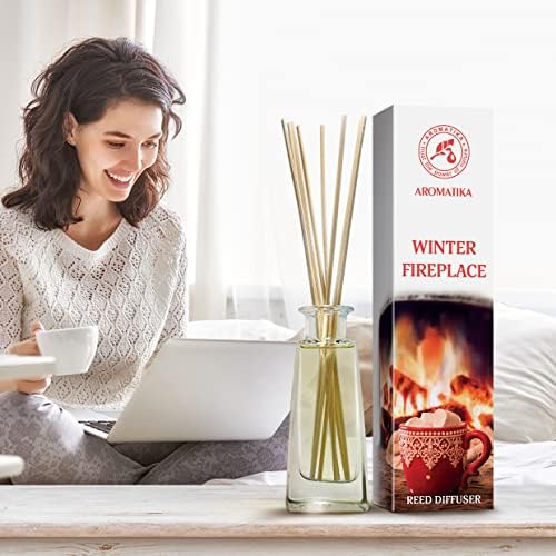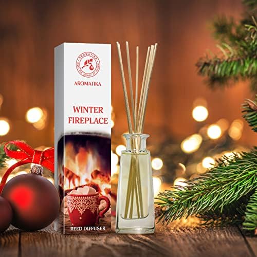 Reed Diffuser Winter Fireplace 3.4 Fl Oz (100ml) – Room Diffuser with Woody and Coniferous Scent – Fragrance Diffuser with Rattan Sticks – Room Freshener – Scented Diffusers – Home Fragrance