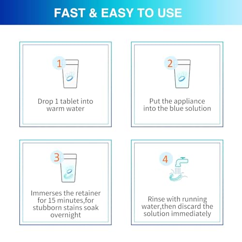 QUCIK DISSOLVE: Our cleaning tablets adopt Reactive Oxygen Micromolecular Osmosis Technology, provide comprehensive cleaning and deep desccaling for your retainers, dentures or other dental appliances with no harm
