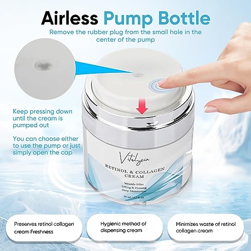 A patch test is recommended before you use our retinol cream. Simply apply a small amount of the cream on your wrist and wait for about 15 mins to see if there is allergic reaction. If you find any redness or any other allergic reaction, STOP using the cream.Please remove the rubber plug from the small hole in the center of the pump before first use, and keep press down until the cream is pumped out.You can choose to either use the pump, or simply open the cap.