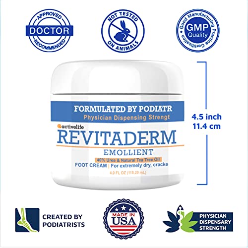 Revitaderm 4D Urea Foot Cream, Deeply Moisturizes for Dry, Cracked Feet, Hands, Elbows and Knees, Ultra Repair Cream and Callus Remover For Feet, Free Pumice Stone Included, Pack of 1