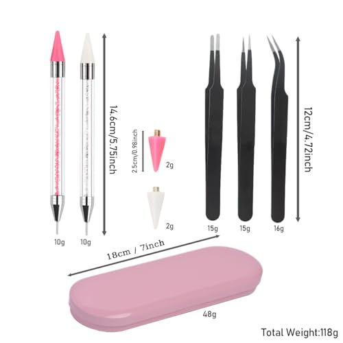 Its dual-end design, perfect for picking up and placing nail gems, crystals, and diamond painting, coupled with bonus tweezers and extra tips make this set an absolute must-have for nail art enthusiasts and DIY craft artists. Create stunning designs effortlessly!”