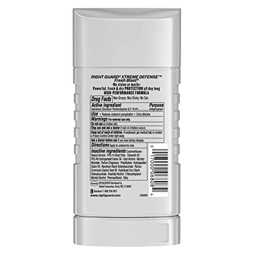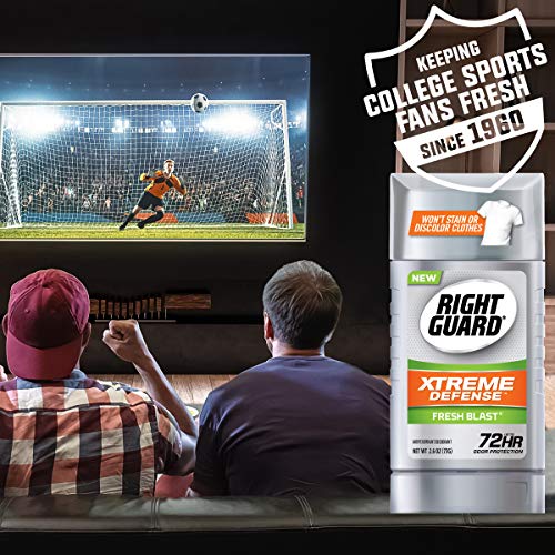 Right Guard Xtreme Defense Antiperspirant Deodorant Invisible Solid Stick, Fresh Blast, 2.6 Ounce , 6 Count (Pack of 1)