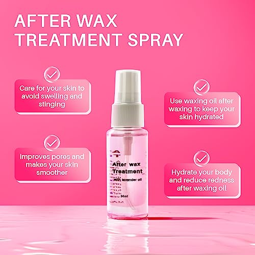 At the end of the waxing session, spray the after wax treatment spray onto the waxed area and massage gently for a soothing and relaxing effect.