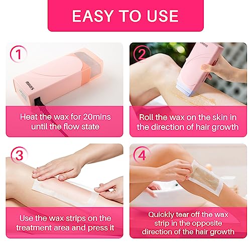 Roll on Wax Kit for Women,Wax Roller for Hair Removal,Roll on Wax Warmer for Larger Areas of Body-Portable Waxing Roller for travel,at Home Waxing Kit-Soft Wax Heater for Sensitive Skin (Pink)