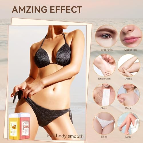 [Natural wax cartridge]- the wax rolling kit contains honey wax and rose wax. it is made of natural and gentle ingredients that prevent redness and irritation and effectively remove thick and fine hairs.