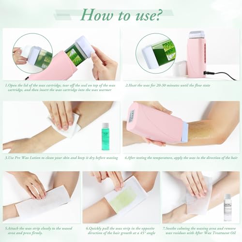 Wax Roller Kit for Hair Removal: The wax roller kit is easy to use, and simplifies body waxing sessions. The wax warmer is heated on both sides, it takes about 20-30 minutes to completely melt the wax roller, at home waxing kit saves time and money.