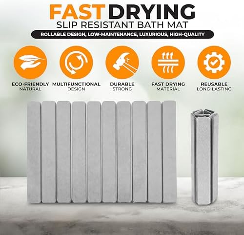 Roll-Up Bathroom Shower Mat, Quick Dry Diatomaceous Stone, Reusable Premium Stone Bath Mat
