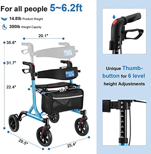 Be the first to review “Rollator Walker for Seniors with Cup Holder, Upgraded Thumb Press Button for Height Adjustment, 4 x 8″ Wheels Walker with Seat Padded Backrest Folding Lightweight Walking Aid, Blue”