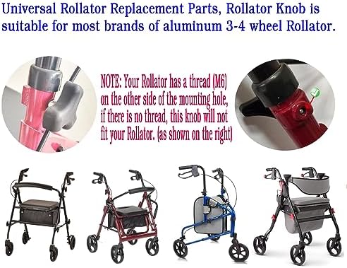 3.Height Adjustment Knob Be applicable most brands Rollator Model: R726BK/R726RD/R726BL/795BU/RTL10261BL/RTL10261RD/R728RD/R728BL/795BU/795B/795BK/700-935BK /700-935CR/301PSBN/301PSRN/700-959E/700-961/MDS86825SLR/MDS86825SLBLK/MDS86825SLB/MDS86835SHE/MDS86800XWS/RLAA8BL/RLAA8BG/RLAA8PK/009-01/MDS86800XW/4202CBL/4222RD/4202CDB/4224/4200CRD…etc