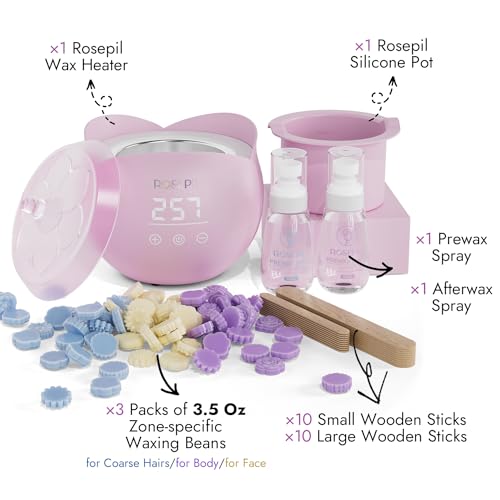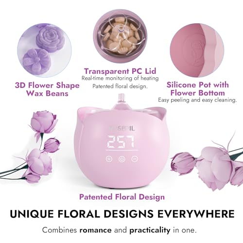 Rosepil Digital At Home Wax Warmer Kit, Floral Brazilian Wax Hair Removal Waxing Kit for Women Men with 10.6 Hard Wax Beads, Waxing Oils & Accessories (Purple)