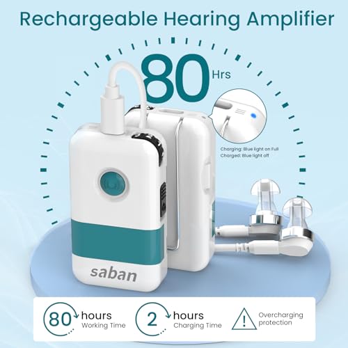 Saban Hearing Amplifier with 66db Gain, Rechargeable Hearing Aids for Senoirs, Personal Sound Hearing Amplifier with Intelligent Noise Reduction, Gift for Eldly