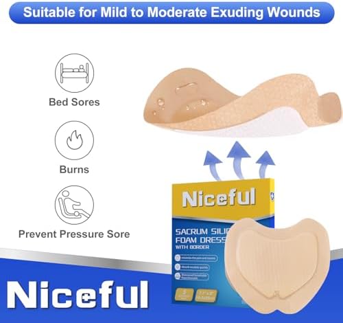 【Soft and Comfortable, Reduces Pain】Niceful sacrum foam dressing is soft and comfortable, enabling it to adhere perfectly to the wound surface, Absorb 15 times the amount of wound fluid. Silicone helps reduce skin irritation, lowers the risk of allergic reactions, and can be painlessly removed, ensuring your wound receives meticulous care, the first choice product for wound care.