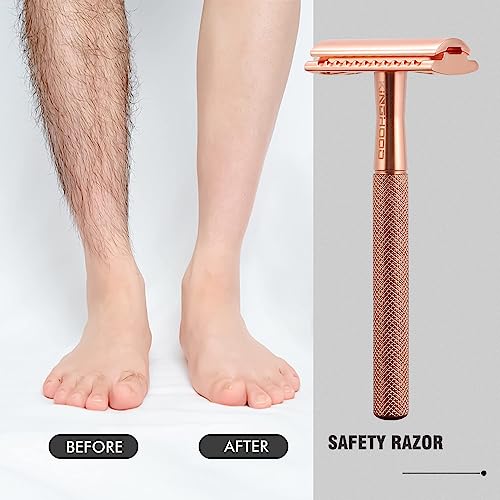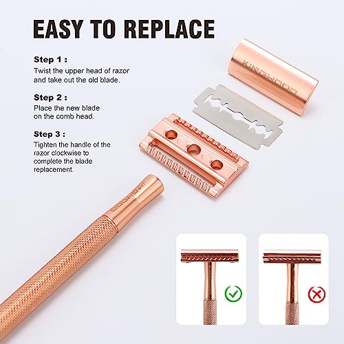 Safety Razor Single Blade for Men with 10 Double Edge Blades Metal Reusable Eco Friendly Razors Rose Gold