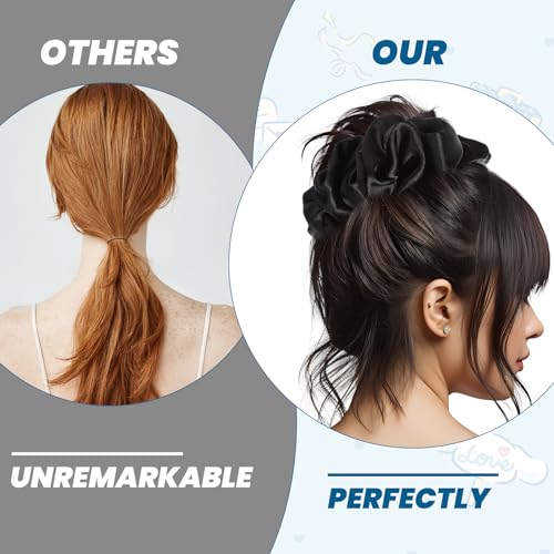 【Perfect Gift Idea】: Our big scrunchies are suitable for thick, thin, and any hair type, can be used in many hair styles such as ponytails, lazy buns, braids, etc., and these scrunchy elastic hair bands you can share with your family and friend, you can believe that silk ponytail holders would make a delightful gift for any accessory-loving woman!