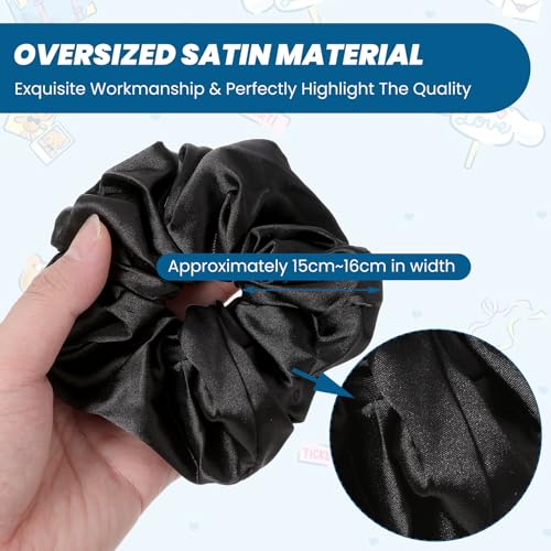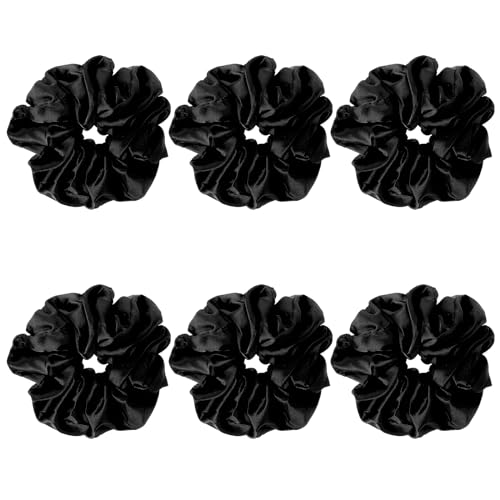 Satin Hair Scrunchies, 6 Pcs Big Silk Scrunchies for Women Thick Hair Soft Satin Scrunchies for Hair Sleep Extra Large Scrunchie Hair Accessories Silk Thick Elastic Hair Ties No Damage (Black)