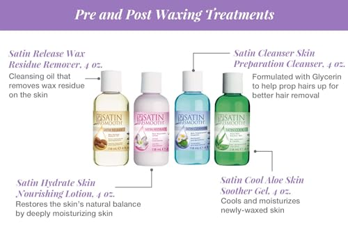 PRE AND POST WAXING CARE FOR SATIN SMOOTH SKIN: Satin Smooth Pre and Post Wax Treatments effectively reduce redness, bumps, or allergic reactions before and after waxing. Pre-wax care will remove excess oil and impurities, conditions the skin for hair removal, making your waxing experience a special one. While the after-wax treatment help to replenish, calm, and restore the skin. Go through a less painful, faster, and efficient waxing treatment with this kit from Satin Smooth!
