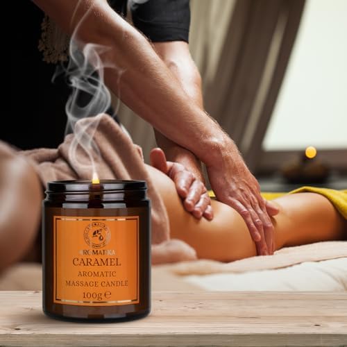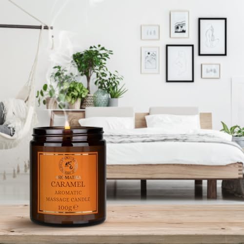 Scented Massage Candle Caramel – Soy Wax Candle 3.5Oz – Blend of Coconut and Almond Oils – Vanilla Oleoresin – Relaxing Massage Candle – Body Care – Calming – Beauty – Aromatherapy – Glass Candle Gift