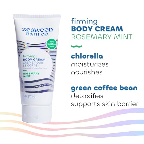 Seaweed Bath Co. Firming Body Cream, Rosemary Mint Scent, 6 Ounce, Skin Toning Hand & Body Lotion Moisturizer for Dry Skin, with Sustainably Harvested Seaweed, Chlorella, Green Coffee Bean
