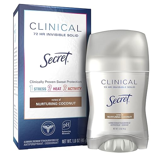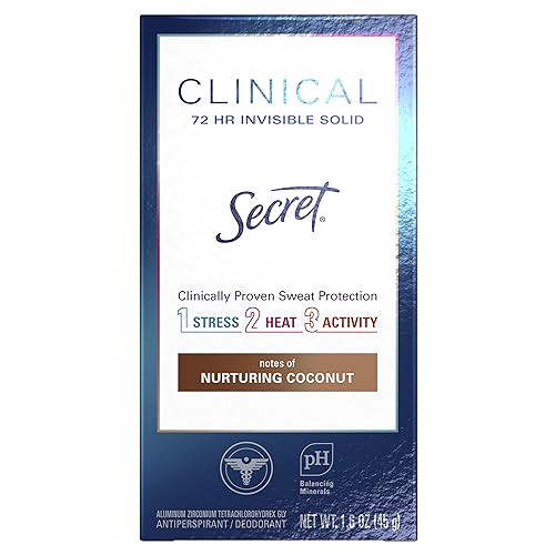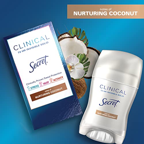 Secret Clinical Strength Antiperspirant and Deodorant for Women, Invisible Solid, Clean Coconut 1.6 Oz (Pack of 3)