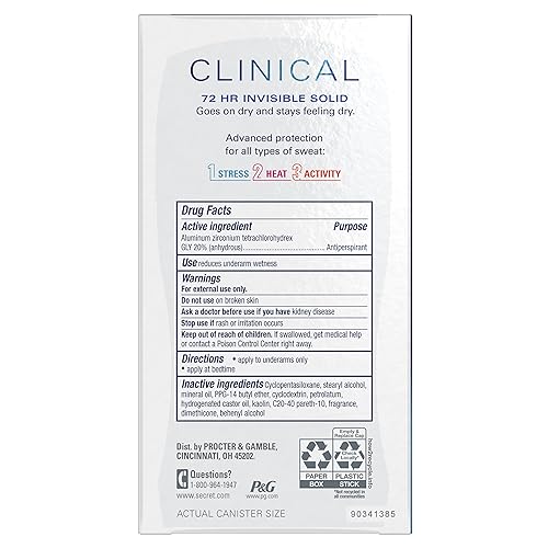 Never let them see you sweat! Secret Clinical Strength Antiperspirant and Deodorant for Women is clinically proven protection for 3 types of sweat; 1) stress sweat, 2) heat sweat and 3) activity sweat. It goes on dry and stays dry with 8x sweat activated odor fighters vs Secret Original Invisible Solid. Secret Clinical Strength Antiperspirant and Deodorant for Women Invisible Solid—incredible protection, no matter what the day may bring. Also available in soft solid and clear gel.