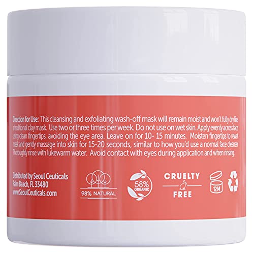 SeoulCeuticals Korean Face Scrub – Exfoliating Face Mask Skincare K Beauty Mask for Glass Skin – Kaolin Clay + Charcoal Cream Exfoliant Mask 2oz