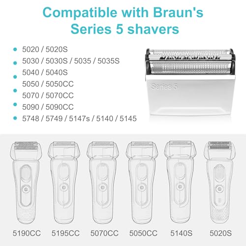 Compatible with Braun series 5 replacement head 5190cc, 5090, 5090cc, 5197cc, 5195cc, 5147s, 5145s, 5070, 5070cc, 5050, 5050cc, 5040, 5040s, 5140s, 5030, 5030s, 5020, 5020s.