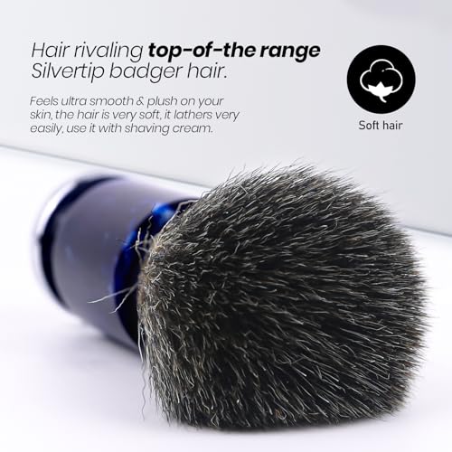 【High Quality Shaving Brush】Shaving brush with unique man made badger style hair rivaling top-of-the range Silvertip badger hair. feels ultra smooth & plush on your skin, the hair is very soft, it lathers very easily, use it with shaving cream.