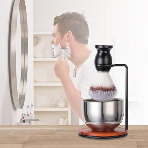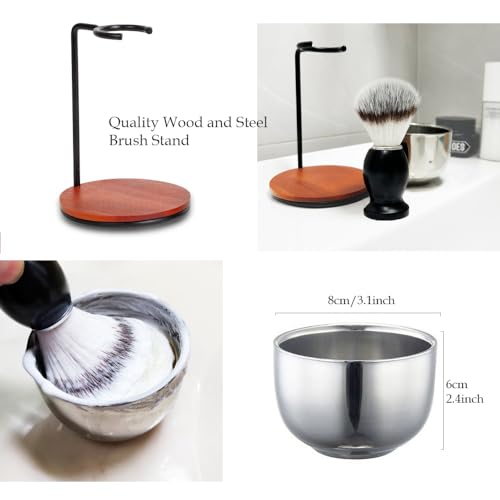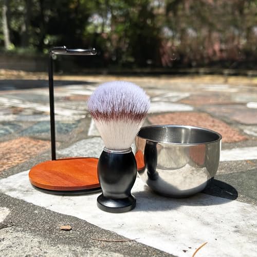 Shaving Brush Set for Men,3 in 1 Shaving Brush Set Includes Synthetic Brush, Steel Shaving Bowl and Stand (Set1)