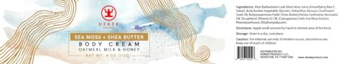 Shea Butter Body Cream – 4 Oz | Dry Skin Moisturizer | Body Butter for Dry Skin | Natural Skin Care Cream for Body | Oatmeal Milk & Honey Scented Sea moss | Avocado Oil