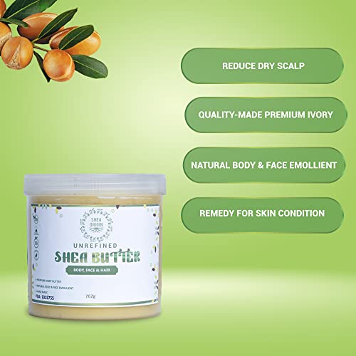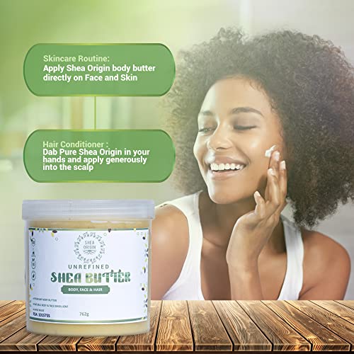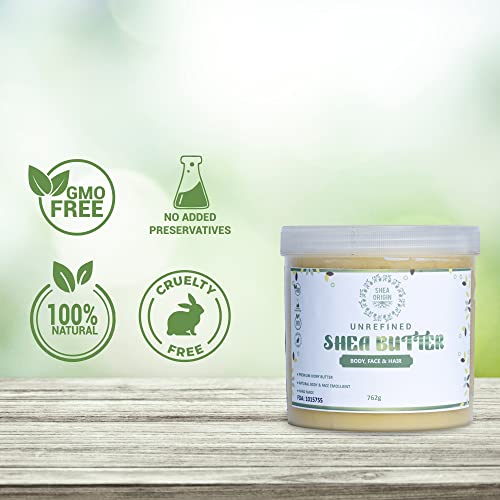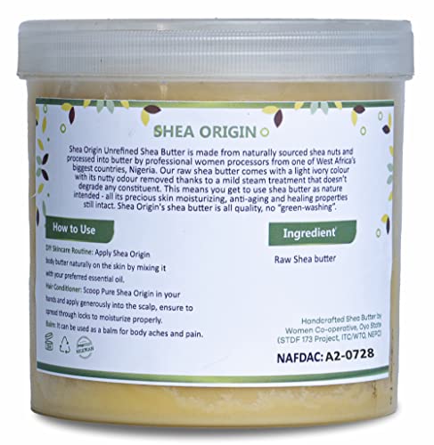 Shea Origin African Raw Shea Butter 1.6lbs Big Jar | Intense Moisturizing Pure Body Butter | Hair Softener, Body, Face & Hand Cream | Fluffy Ivory to Relieve, Itching, Sunburn Reduce Stretch Marks