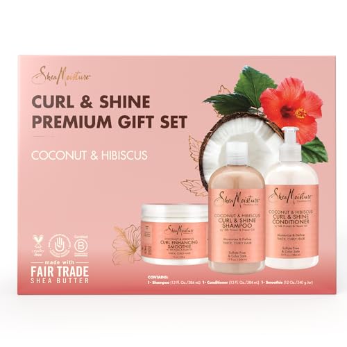 SheaMoisture Coconut & Hibiscus Curl TRIO: Includes Curl & Shine Shampoo, Curl & Shine CONDITIONER, Curl Enhancing Smoothie with a box