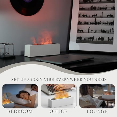 Shiawase Flame Oil Diffuser, 200ml Air Diffuser/Humidifier,Fire Essential Oil Scent Diffuser for Home, Kids Room, Bedroom, Aroma Diffuser with 2 Light Modes, Waterless Auto Off (White)