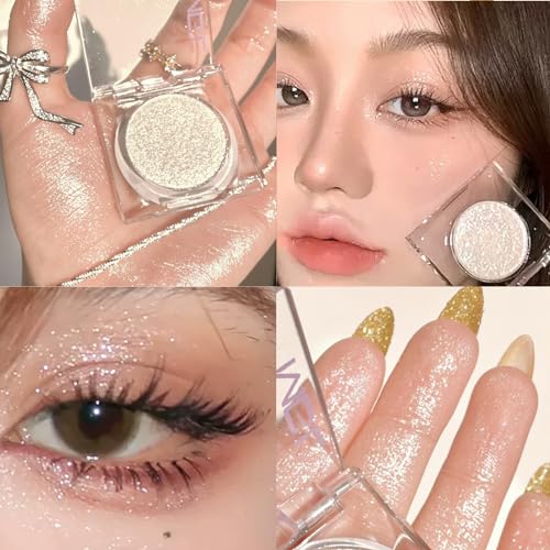 Shimmer Glitter Eyeshadow Palette, Korean Eye Glitter Makeup, Ultra-Blendable, Sparkle Silver Champagne Gold Eye Shadow, Single Shade Metallic Pigmented Color