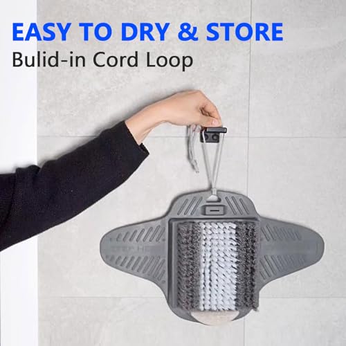 [Deep Foot Exfoliator]:Hundreds of bristles get your feet cleaner than ever before,The foot scrubber with pumice stone in shower ,With strong elastic suction cups to grip the shower floor tightly.Enjoy foot care in the shower.