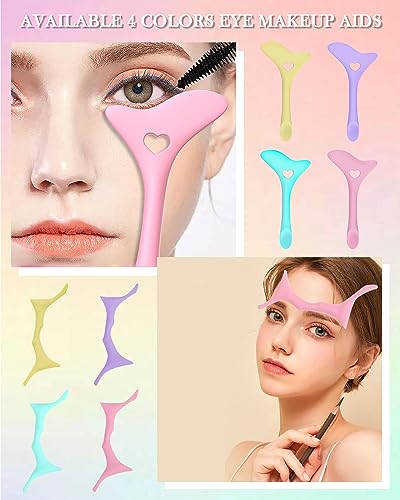 2Pcs Eyeliner & Eyebrow Stencils Silicone Tool- 5 in 1 Winged Tip Eyeliner and Eyebrow Stencil Aid, Reusable Multifunctional Eye Makeup Tool Kit, for Women Winged Eyeliner, Defined Brow, Lip Line, 4 colors include Blue/Pink/Yellow/Purple