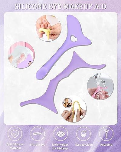 Silicone Eyeliner Eyebrow Shaping Stencils Set- 5 in 1 Winged Tip Eyeliner Aid and 6 in 1 Eyebrow Stencil Aid,Reusable Multifunctional Eye Makeup Tool Kit,for Women Winged Eyeliner, Defined Brow, Lip Line-Purple
