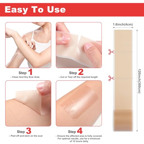 ✅ Versatile Uses: This Roll is extra-long 1.6″ X 3M (120″) silicone scar strips is designed for both new and old scars. It serves as an excellent choice for enhancing the appearance of a wide range of scars, including acne scars, tummy tucks, post-surgery scars, keloids, hypertrophic scars, and more.
