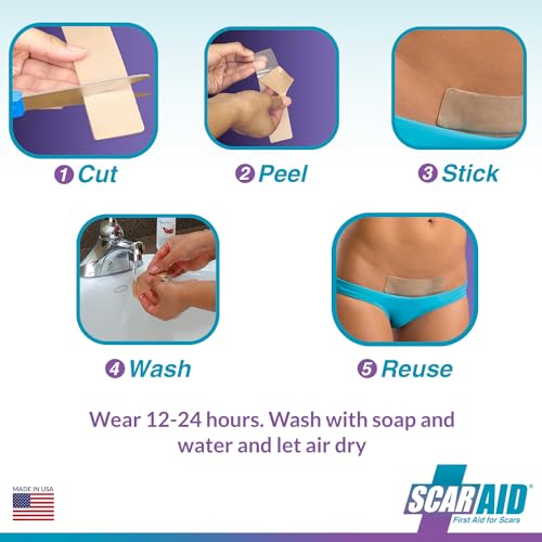 Easy to Use: Simply clean and dry the scar site, cut a length of ScarAid tape to cover the entire scar, and apply; Each piece is reusable for up to 2 weeks