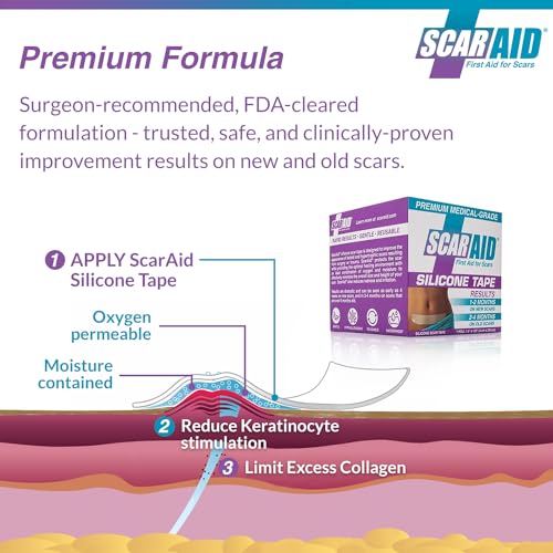 Effective Scar Care: ScarAid silicone scar tape is specifically designed to improve the appearance of keloid and hypertrophic scars, resulting from surgery or trauma; It effectively minimizes the overall size and height of your scar
