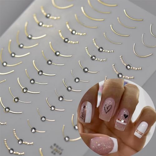 Simple Lines Nail Stickers for Nail Art 6Sheets French Tip Nail Art Stickers Curved Stripe Nail Supplies Crystal Diamond Nail Design Sticker French Gold Silver Line Nail Decals for Nail Art Decoration
