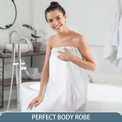 SINLAND Women’s Spa Wrap Microfiber Lightweight Knee Length Bath Body Wrap Shower Towels with Adjustable Closure 32 Inch x 60 Inch White