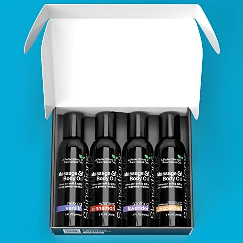 Skinsations – Massage Oil Kit (Set of 4) Natural Scents of Vanilla, Cinnamon, Lavender in a Blend of Sweet Almond Oil, Fractionated Coconut Oil, Grapeseed Oil & Jojoba Oil Body Oil
