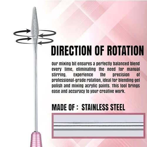DURABLE & LONG-LASTING: Crafted from high-quality stainless steel, our mixing bit is resistant to rust and promises longevity. It excels at blending nail polish, UV gel, and acrylic paint, eliminating the need for noisy shakers and streamlining your workspace. With the added convenience of the nail polish holder, your tools will stay organized and within reach, further enhancing their durability.