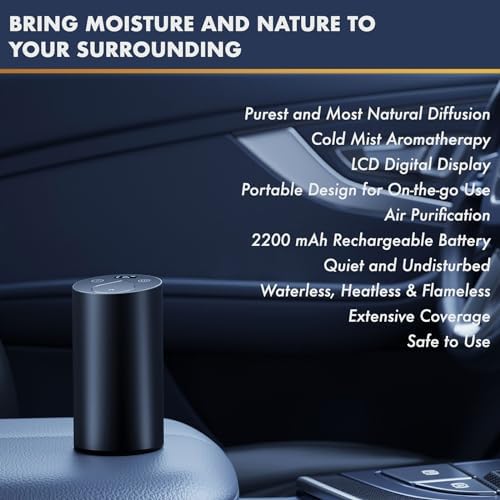 Smart Car Air Freshener, Waterless Essential Oil Diffuser Nebulizer with LCD Display, Rechargeable and Cordless Aromatherapy Diffuser for Home, Office, and Car (Black)